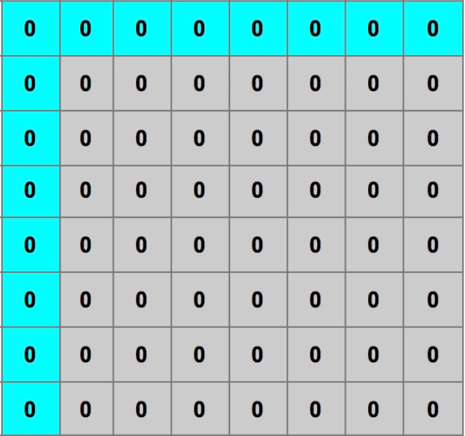 //初始化二维数组 。行和列都多加了一个并且都是0,属于占位符,这是为了判断上一个是否相等的操作